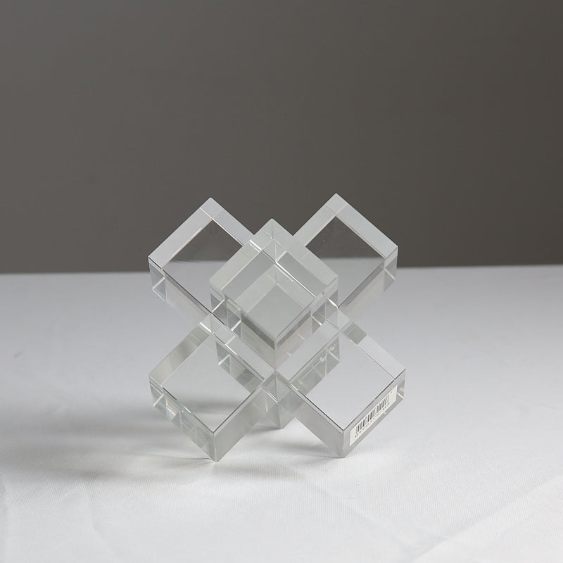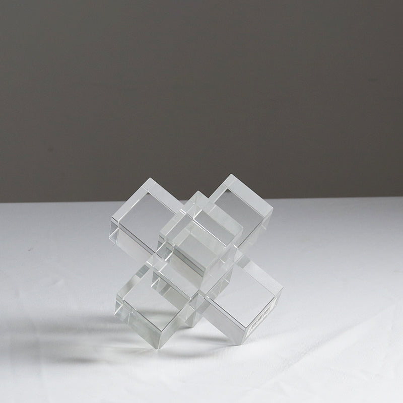 Most of us struggle with doing up our coffee and centre tables which almost always tend to be the focal point of any living area! We have for you a no fuss minimalistic table centre piece to enhance your coffee tables and centre tables. Its abstract shape crafted in clear crystal glass makes it a unique and luxurious addition to any space and it can be placed on decorative books, trays or just by itself. This set of two distinctive modern multi-cuboidal design are made out of heavy crystal glass and can even be used as a paperweight!